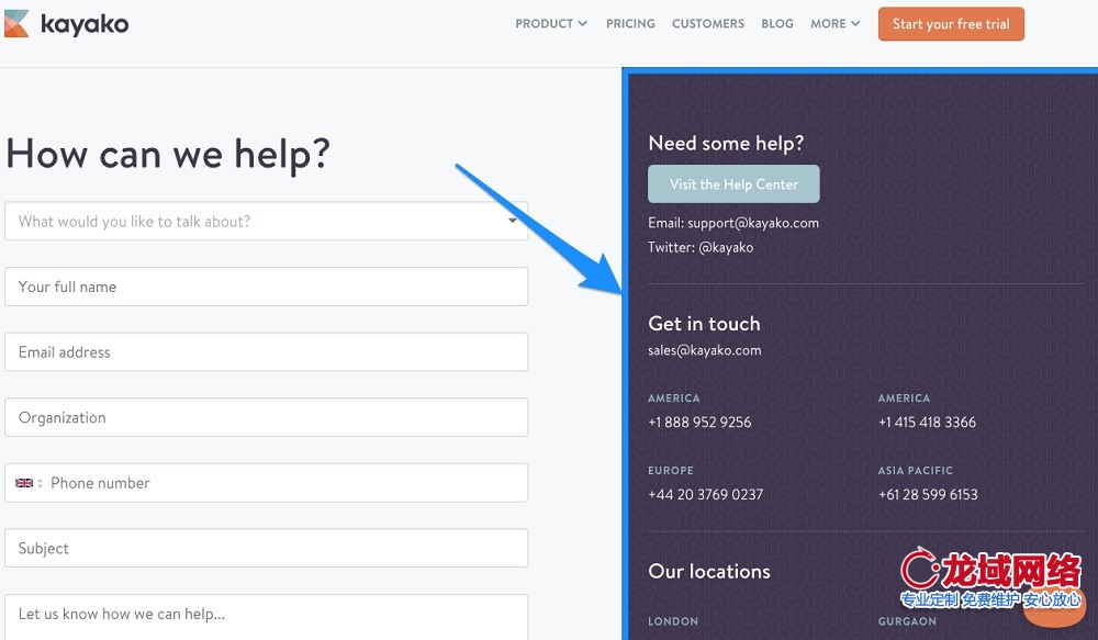 最好将所有联系人选择集成到一个位置。无论您的客户需要有关当前问题的最新信息,进行媒体联系还是需要技术帮助,都将在一页上显示。尽管某些网站至少会区分主动支持和自助式知识库。交叉链接您的联系人选择可以帮助人们更轻松地找到解决方案的途径。大多数页面都通过其与我们联系页面链接到文档和常见问题解答 。Basecamp,Hootsuite和HubSpot都有社交支持渠道作为其选择之一。您可以考虑添加指向客户服务论坛,培训选项和预先录制的视频的链接。您不应将客户与多种选择混淆。您应该将联系页面用作所有支持平台的主要中心,而不仅仅是电子邮件。这样,人们可以选择自己觉得合适的任何选项。